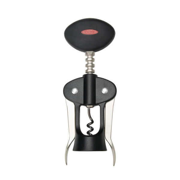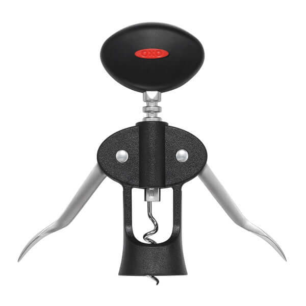 The OXO SoftWorks Corkscrew features a non-stick screw that slides smoothly into corks, taking the strain off your hands. A wide, comfortable non-slip knob turns to lift the die-cast zinc wings. Once they're fully engaged, simply push down and watch the cork glide out of the bottle neck. Use the SoftWorks Corkscrew to uncork vinegar, olive oil and more.