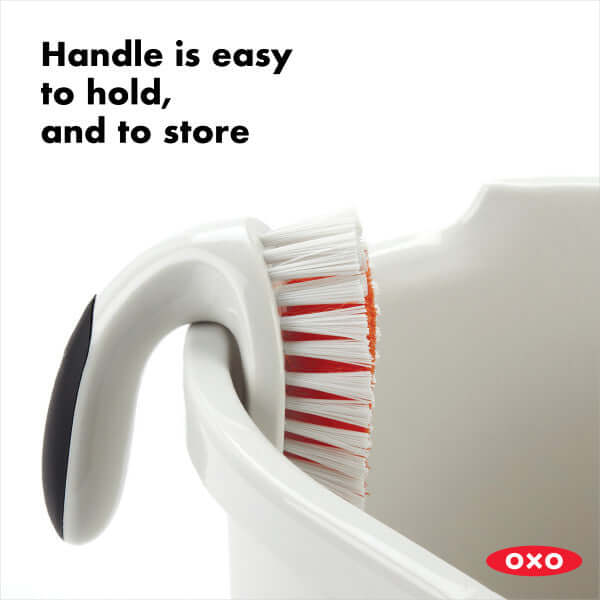 The All Purpose Brush has stiff outer bristles for tough spots and soft inner bristles that leave surfaces aglow. The contoured handle keeps knuckles from rubbing up against surfaces, and has a soft, comfortable, non-slip grip to cushion hand while scrubbing.