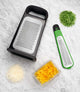 • 4th side has a zester blade that can be used on the grater or be detached and used independently over a bowl or a cutting board