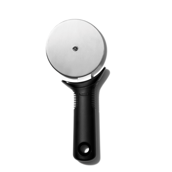 The OXO Good Grips Pizza Wheel has a durable, stainless steel blade that can easily slice through pizzas?and also efficiently cut brownies or shred lettuce for salad. The sharp blade glides through crusts and toppings with ease, and handle is designed with a thumb guard that keeps your fingers safe. The soft, non-slip grip ensures you maintain control when you?re on a roll. Dishwasher safe.