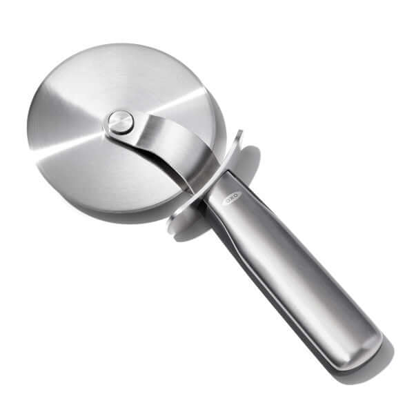 Make pizza night even better with the OXO Steel Pizza Wheel. It has a large (4-in/10 cm) stainless steel blade that effortlessly zooms through thin crusts or thick pan pizza piled high with toppings. (For safety, we added a built-in thumb guard that?ll help keep fingers out of the way.) The sleek handle makes slicing extra-easy, too: It has the strength of stainless steel, with lots of leverage, plus the comfort of a soft grip, so you can slice up a pie with minimal effort.