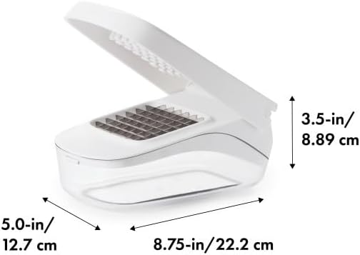 • Quickly and safely chops fruits, vegetables and more in one easy motion