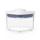 - Push the button to engage the airtight seal. The button doubles as a handle for the lid. For best results, always use the button to open and close. Do not carry POP containers by the lid.