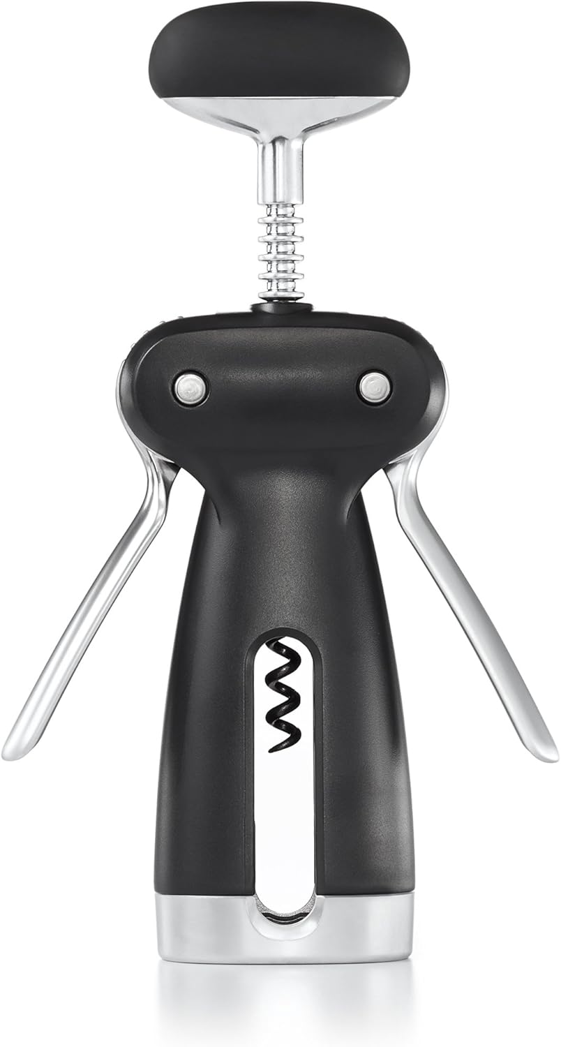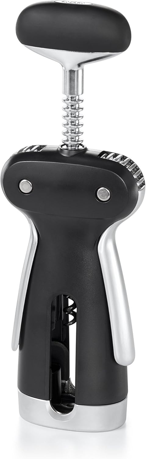 From huge holiday parties to intimate dinners, the OXO SteeL Winged Corkscrew with Removable Foil Cutter is the only tool you need to keep the wine flowing. A Removable Foil Cutter detaches from the Corkscrew’s base for quick bottle-top prep. The Corkscrew includes a non-stick, self-centering “worm” that glides into any type of cork. The extended body is comfortable to hold and the pair of curved, die-cast handles won’t hurt your hands. The soft non-slip knob turns smoothly, removing the cork without breakage. Also great for bottles of oil or vinegar.