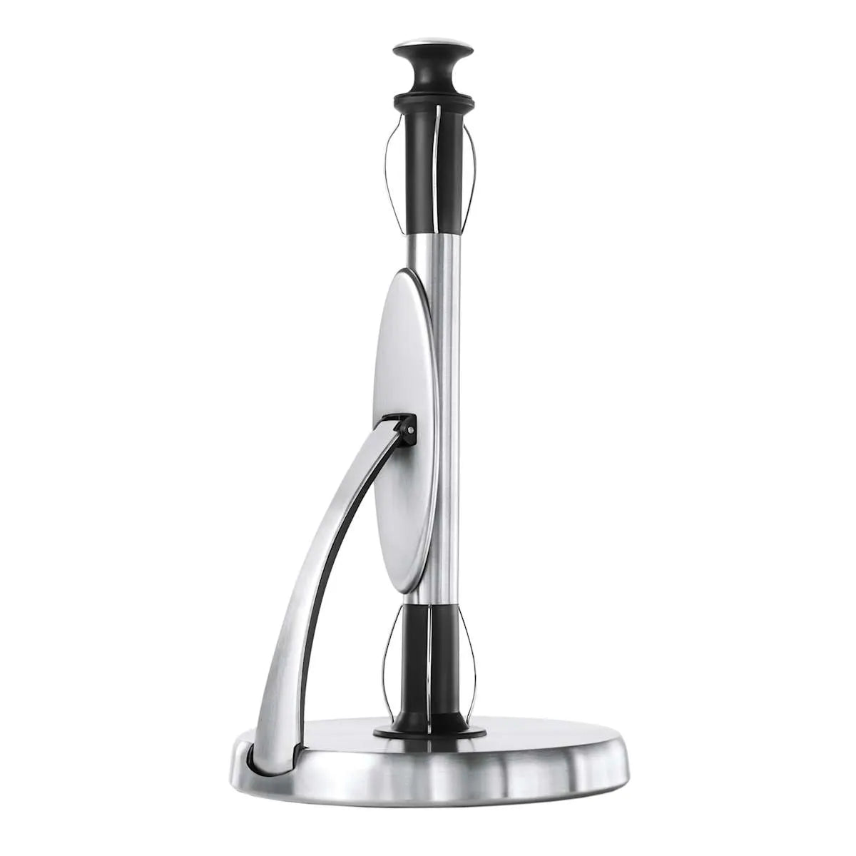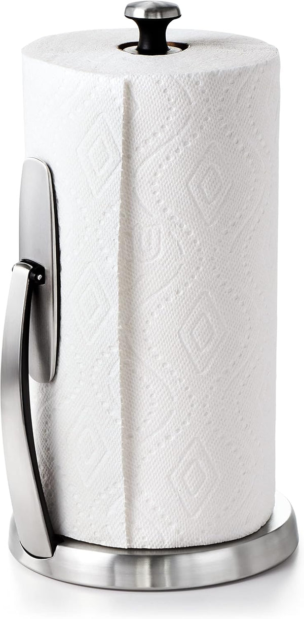 No matter what brand or size paper towel roll you use, the OXO Good Grips SimplyTear Paper Towel Holder’s spring-activated arm keeps things secure for a true, one-handed tear. Designed with internal resistance to prevent paper towel rolls from unraveling; the arm pivots out and locks open for fuss-free reloading. The weighted stainless steel base and wide rim hold rolls in place, while the brushed stainless steel design looks elegant on any kitchen countertop.