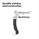 - Bottle opener integrated into handle and foil cutter easily folds out of body