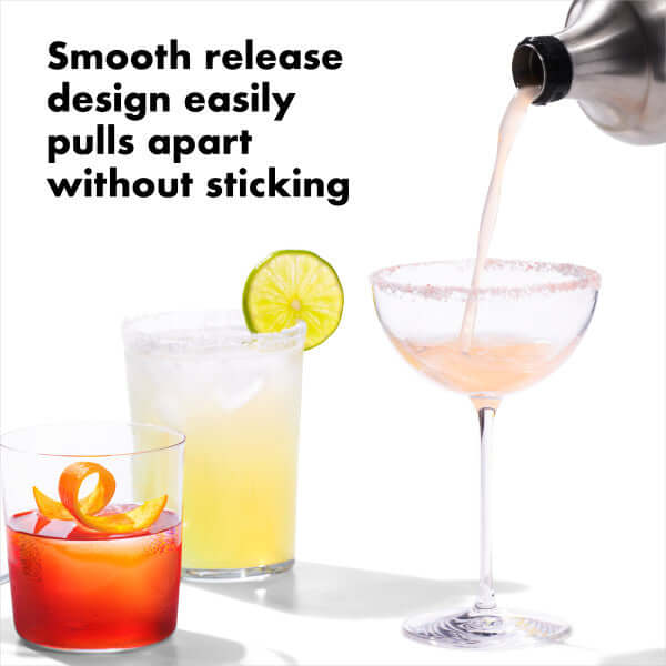 With two silicone gaskets that stop leaks in their tracks, plus a smooth-release design, the OXO SteeL Cocktail Shaker lets you craft cocktails ? at home -- like a pro. Measure, shake and serve in style with sleek, single wall stainless steel, the included jigger cap features standard measurement markings, while the built-in strainer keeps your drinks crisp and clean. Dishwasher safe.
